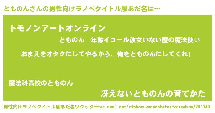 | 胡散臭い通販商品みたいなあだ名 | 『100人中100人が認めたイリジウム磁石…その名も「とものん」』 |