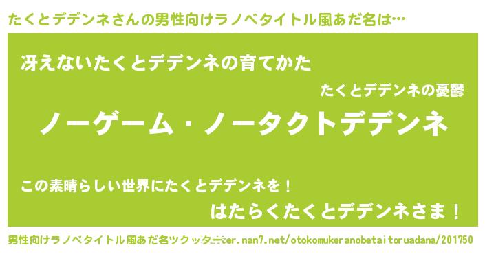 | 女子向けラノベタイトル風あだ名 | 『たくとデデンネ恋絵巻』 |
