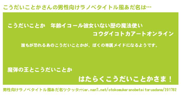 | ヘコむあだ名 | 『こうだいことか(笑)』『こうっふぃ~』 |