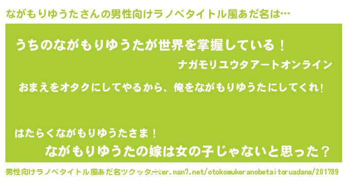 | 女子向けラノベタイトル風あだ名 | 『ながもりゆうた夫妻のなれそめ』 |