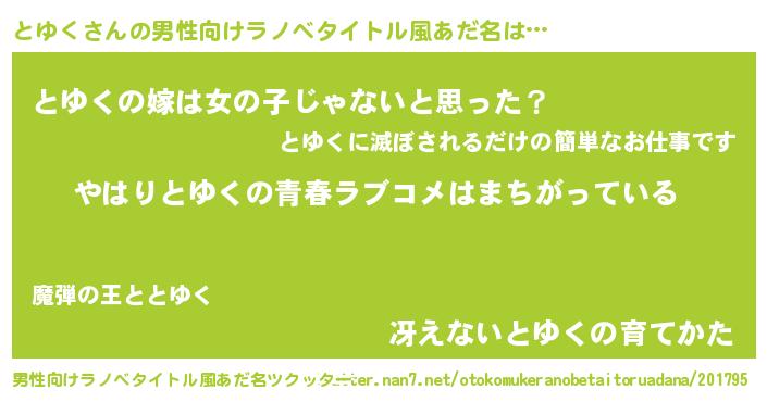 | 胡散臭い通販商品みたいなあだ名 | 『幸せが訪れる高級そうな壺…その名も「とゆく」』 |