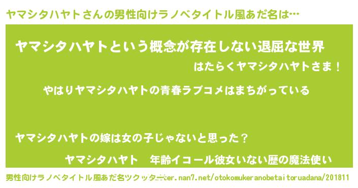 | 女子向けラノベタイトル風あだ名 | 『ヤマシタハヤト伯爵の花嫁』 |