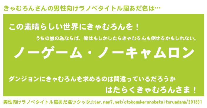 | 意味不明あだ名 | 『眠気覚ましガムきゃむろん味』 |