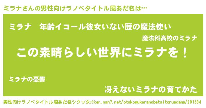 | 意味不明あだ名 | 『住所不定無職ミラナ(8歳)』『自称ミラナ』 |