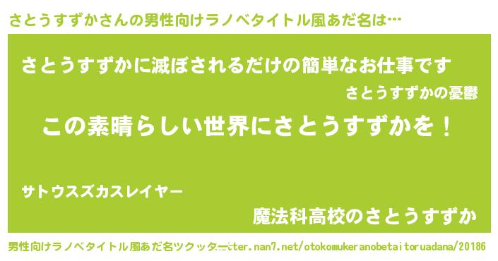 | 意味不明あだ名 | 『住所不定無職さとうすずか(85歳)』 |