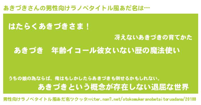 | ヘコむあだ名 | 『あきづき(笑)』『豆乳』『あきを』 |