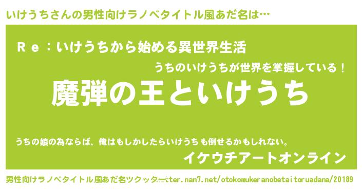 | 意味不明あだ名 | 『住所不定無職いけうち(56歳)』 |