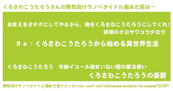 | 女子向けラノベタイトル風あだ名 | 『くろさわこうたろうストレイドッグス』 |