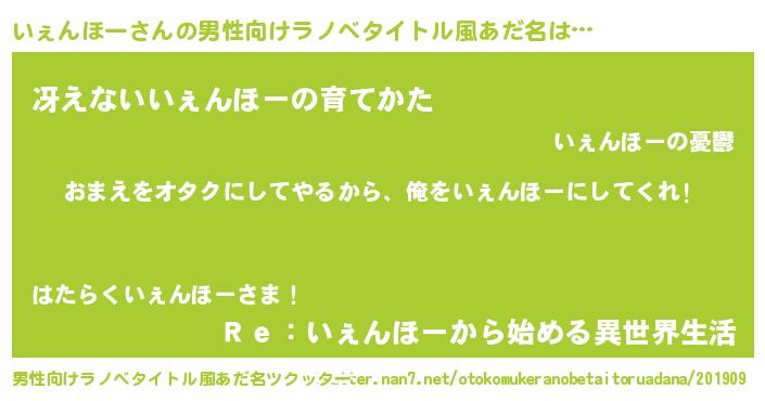 | 女子向けラノベタイトル風あだ名 | 『いぇんほー夫妻のなれそめ』 |