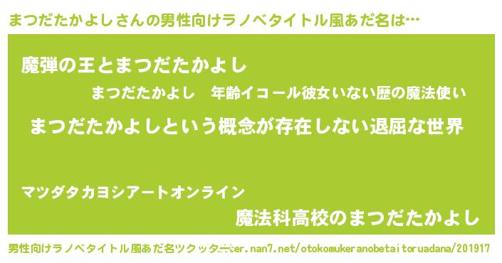 まつだたかよしさんの男性向けラノベタイトル風あだ名をツクッター!