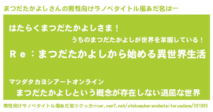 | 意味不明あだ名 | 『自称まつだたかよし』 |