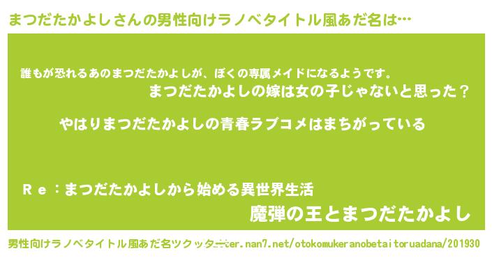 | 女子向けラノベタイトル風あだ名 | 『まつだたかよしの雑貨屋さん』 |