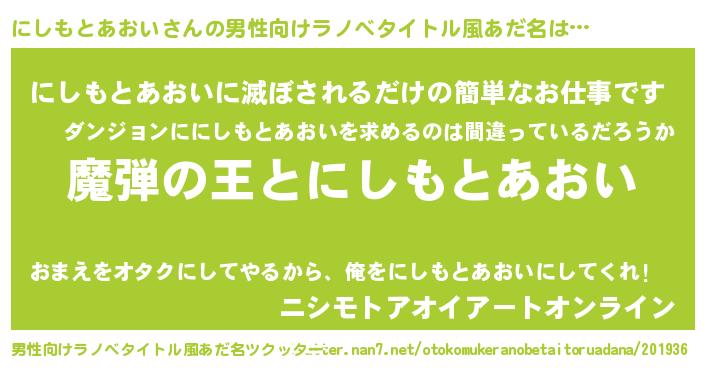 | 意味不明あだ名 | 『住所不定無職にしもとあおい(85歳)』 |