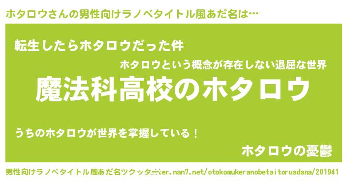 | 意味不明あだ名 | 『自称ホタロウ』『なめこ科ホタロウ属』 |