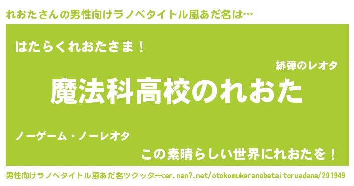| 伝説のあだ名 | 『魔王と互角に渡り合う技術者れおた』 |