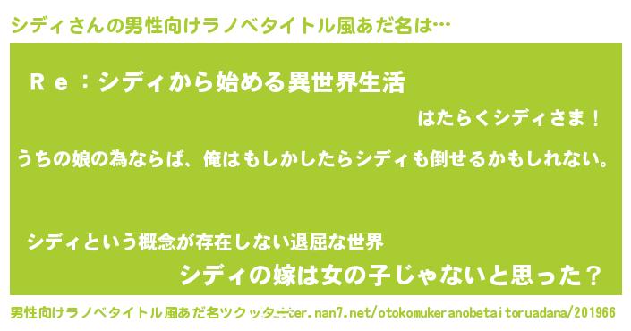 シディさんの男性向けラノベタイトル風あだ名をツクッター!
