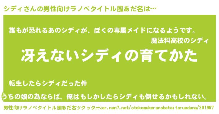 | 女子向けラノベタイトル風あだ名 | 『シンデレラシディ家の靴箱館』 |