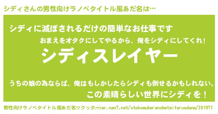 | ヒーロー風カッコイイあだ名 | 『仮面シデダー』『慈愛の使者シディ』 |