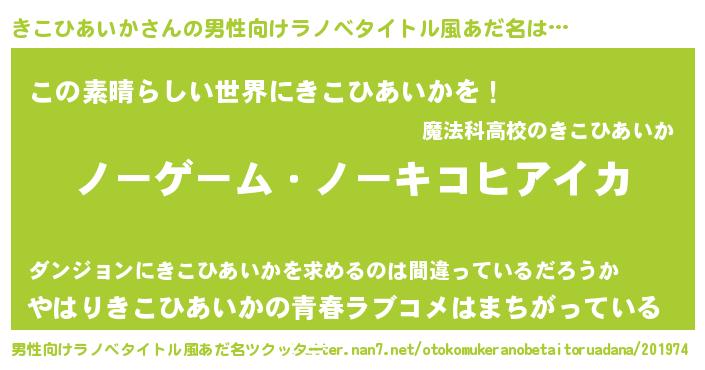 | 女子向けラノベタイトル風あだ名 | 『死神きこひあいかの再婚』 |