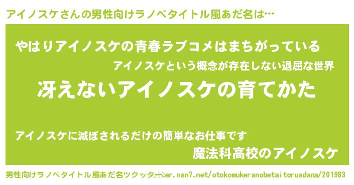 | 意味不明あだ名 | 『アイノスケフォーエバー』 |