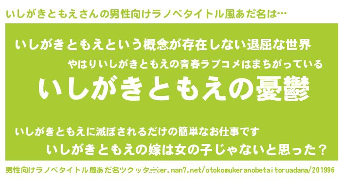 | 胡散臭い通販商品みたいなあだ名 | 『必ず成功する水晶球…その名も「いしがきともえ」』 |