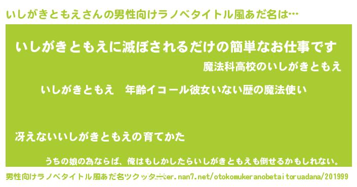 | 女子向けラノベタイトル風あだ名 | 『いしがきともえの玉の輿計画!』 |
