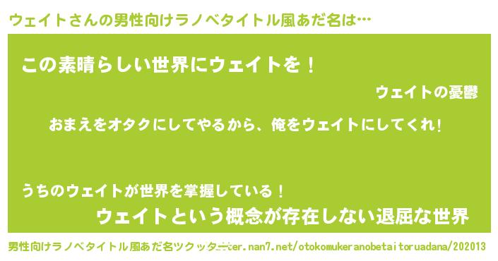 | ヘコむあだ名 | 『ウェイト(苦笑)』『ウェっふぃ~』 |
