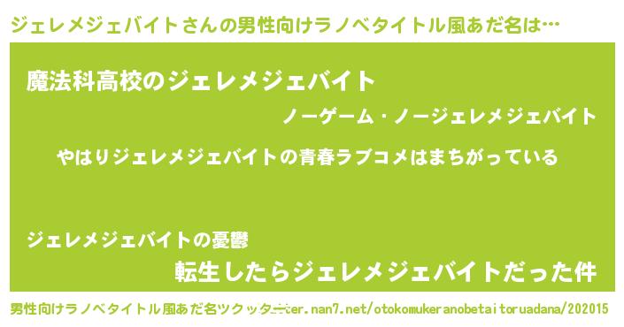 | 女子向けラノベタイトル風あだ名 | 『ジェレメジェバイトの雑貨屋さん』 |
