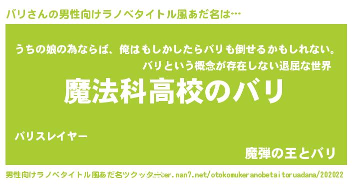 | 女子向けラノベタイトル風あだ名 | 『バリなんてお断りですっ。』 |