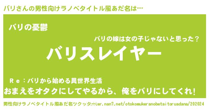 バリさんの男性向けラノベタイトル風あだ名をツクッター!