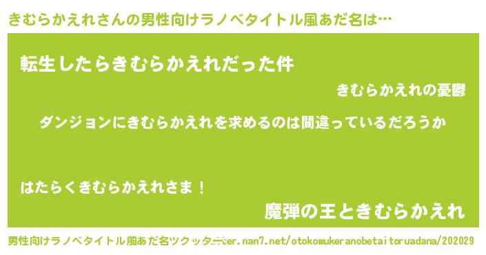 | 女子向けラノベタイトル風あだ名 | 『きむらかえれは平凡を望む』 |