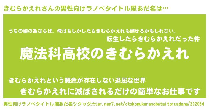 | 女子向けラノベタイトル風あだ名 | 『きむらかえれアンティーク』 |