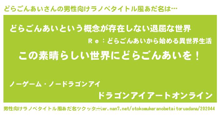 | 意味不明あだ名 | 『住所不定無職どらごんあい(95歳)』 |