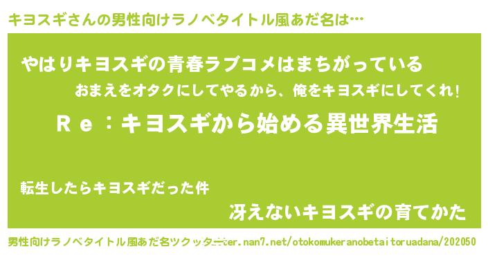 | 胡散臭い通販商品みたいなあだ名 | 『テレビで話題の冬虫夏草…その名も「キヨスギ」』 |