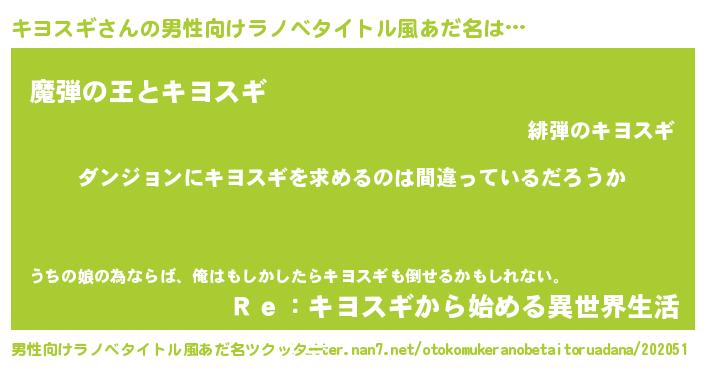 キヨスギさんの男性向けラノベタイトル風あだ名をツクッター!