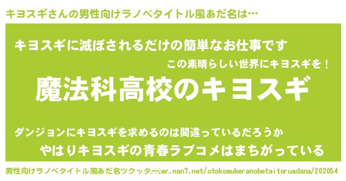 | ファンタジー風あだ名 | 『ゼキヨトゥ』『エターナルキヨスギー』 |
