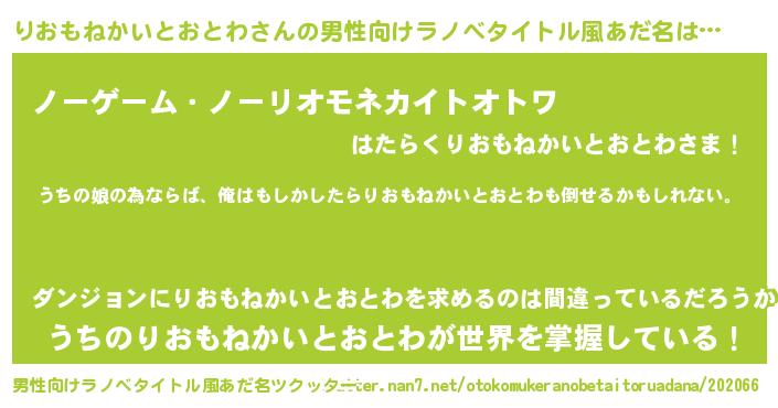| 胡散臭い通販商品みたいなあだ名 | 『運命の人と巡り会える高級そうな壺…その名も「りおもねかいとおとわ」』 |
