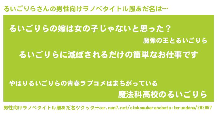 | 意味不明あだ名 | 『とにかく怪しいるいごりら』 |
