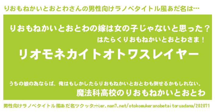 | 萌えアニメ | 主人公(りおもねかいとおとわ)のあだ名『りおくん』 |