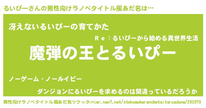 | 女子向けラノベタイトル風あだ名 | 『乙女ゲームの破滅フラグしかない悪役るいぴーに転生してしまった…』 |