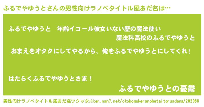 | 胡散臭い通販商品みたいなあだ名 | 『100人中100人が認めたイリジウム磁石…その名も「ふるでやゆうと」』 |