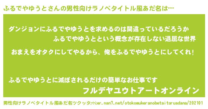 | 女子向けラノベタイトル風あだ名 | 『ふるでやゆうと恋絵巻』 |