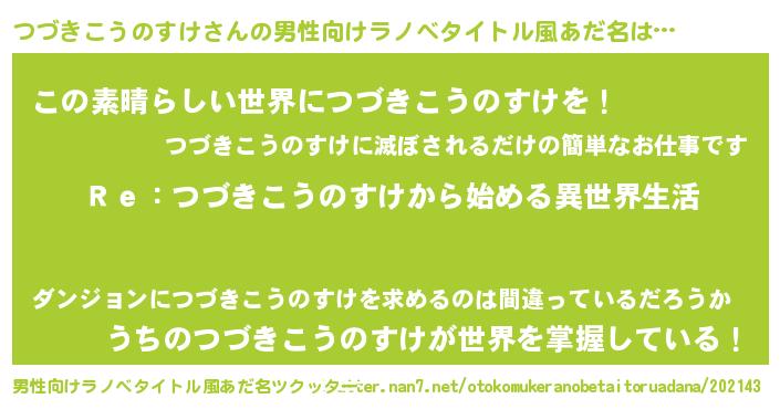 | 意味不明あだ名 | 『自称つづきこうのすけ』 |