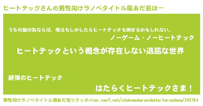 | 女子向けラノベタイトル風あだ名 | 『ヒートテックの契約王妃』 |