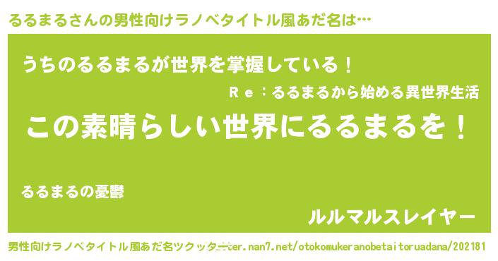 | 女子向けラノベタイトル風あだ名 | 『乙女ゲームの破滅フラグしかない悪役るるまるに転生してしまった…』 |