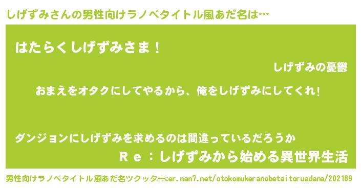 | 女子向けラノベタイトル風あだ名 | 『しげずみ恋絵巻』『闇のしげずみ』 |