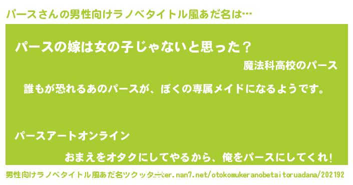 | ヘコむあだ名 | 『パース(爆)』『パーお』『なまこ酢』 |