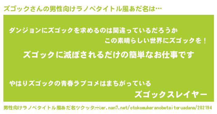 | 伝説のあだ名 | 『覚醒した遊び人ズゴック』 |
