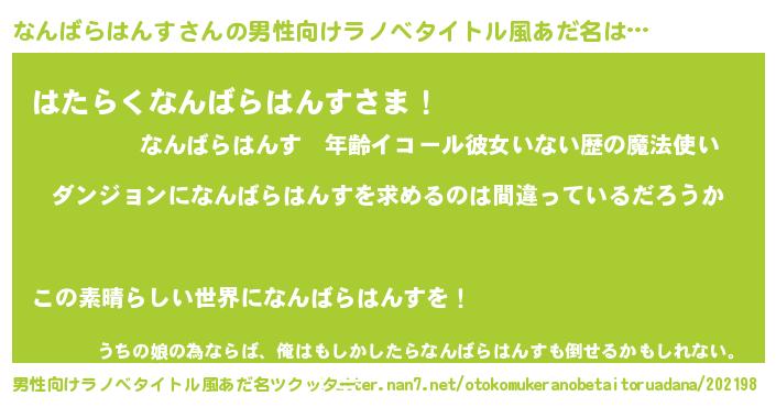| 女子向けラノベタイトル風あだ名 | 『なんばらはんすは平凡を望む』 |