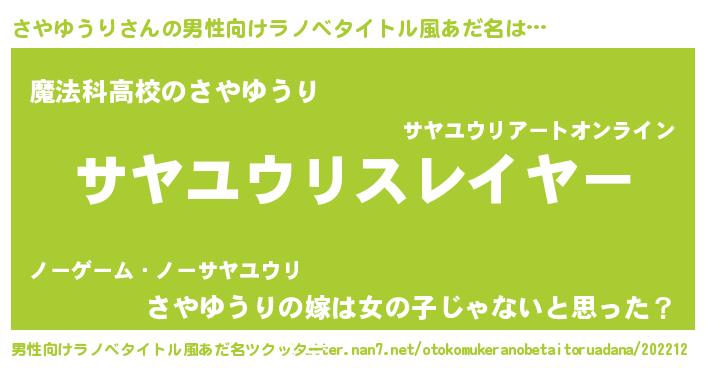 | 肩書あだ名 | 『さやゆうり少尉』『さやゆうり総統』 |